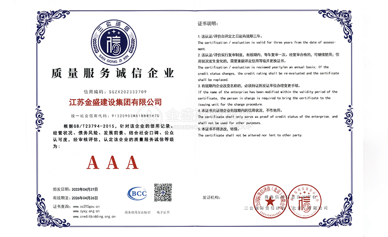 • 3A級資信等級證書